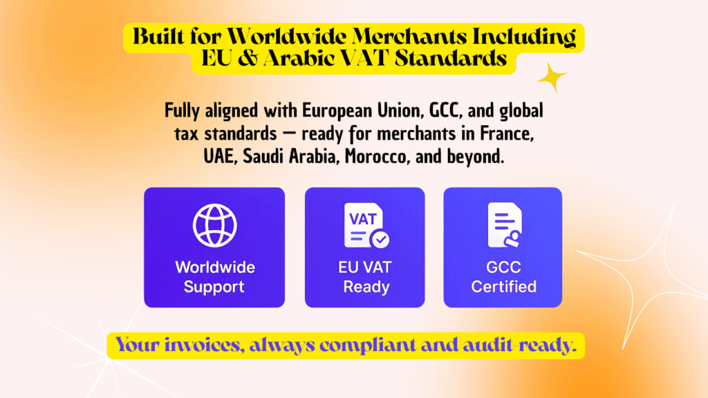 Invoicify Pro makes invoicing effortless for Shopify merchants across Europe and Arabic markets.